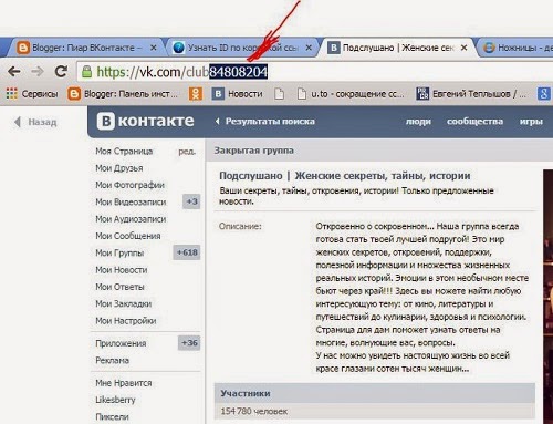 где значение «84808204» после «club» является ID группы в Контакте. А бывают с красивым адресом, как этот паблик:
