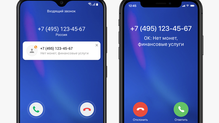 При поступлении телефонного звонка приложение ОК сверяется с собственной базой телефонных номеров и показывает информацию о найденном номере пользователю: название компании и сферу ее деятельности. Если номер помечен как спам, пользователь увидит соответствующее сообщение на экране дозвона.