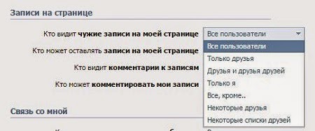 Что нам тут предлагают? В блоке «Записи на странице» есть четыре варианта приватности стены: