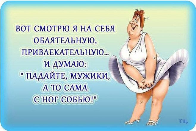 - Каждый день любуюсь собой в зеркале и думаю, ну и повезет же кому-то.