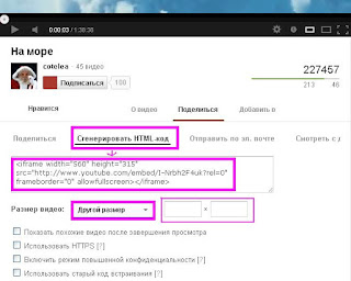 Способ 2. Добавление видео со вставкой Html-кода (простой, без знания языка Html)