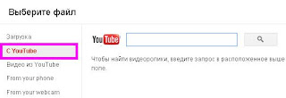 2) Затем в открывшемся поверх страницы сообщения окне выбрать С YouTube и в строке поиска написать название или тему видео.