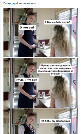 В картинке-примере видно, что шутка мема, в данном случае, ответ мужчины – длинное предложение, которое несёт в себе замысловатый текст, при чтении которого не сразу улавливается шутка, как говориться, «а где смеяться». Такие мемы продвижение в Яндекс имеет свою популярность и у многих даже вызывает неподдельный интерес, но всё же, аудитория больше предпочитает старый добрый мем.