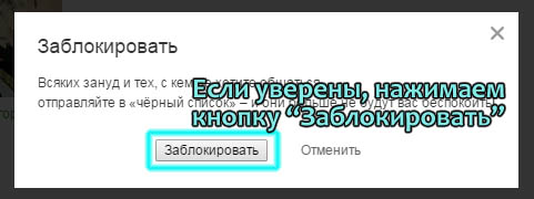 - Во всплывающем окошке нажимаете «Заблокировать».
