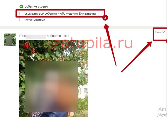 В отношении друзей есть 2 вида блокировки. Первый касается отображения их новостей в ленте. Можно нажать на значок справа и выбрать пункт «Скрыть новости пользователя». Так вы останетесь друзьями, но не будете видеть публикаций.