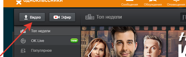 Заходите на свою страничку в Одноклассники, справа вверху есть значок видео, я отметила красной стрелкой.