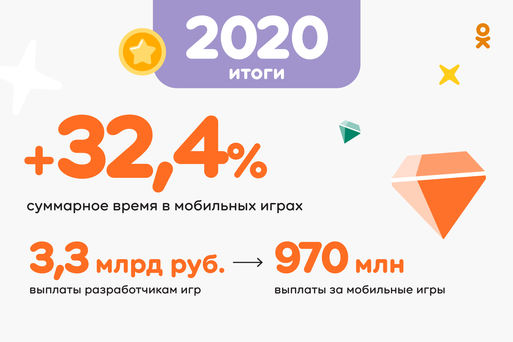 Благодаря росту вовлеченности игроки стали активнее приобретать внутренние бонусы на мобильных устройствах: в результате ОК выплатили разработчикам мобильных игр 970 млн рублей за год. Это на 62% больше, чем в 2019 году.