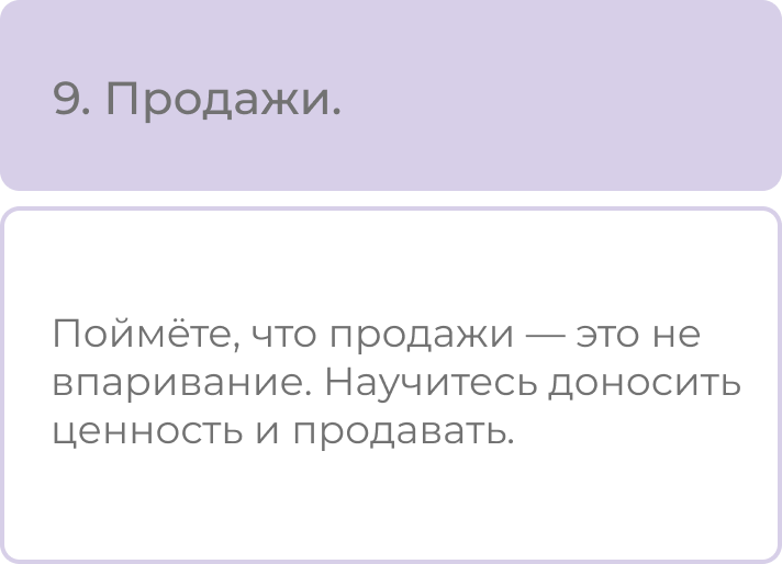 Поймете, что продажи — это не впаривание, научитесь доносить ценность и продавать.