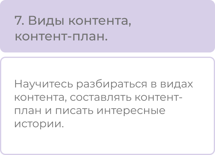 Вы научитесь разбираться в видах контента, составлять контент-план для себя и клиентов и писать интересные истории