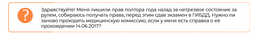 Адвокат и автоюрист Сергей Радько говорит, что водитель обязан снова пройти медкомиссию. Инспектор не примет во внимание медицинские справки, полученные ранее совершения нарушения. Кроме того, срок действия медицинского заключения составляет 1 год, поэтому заключение 2017 года является недействительным.
