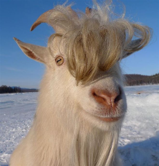 У некоторых пород козлов бывает необычная шевелюра, которая выглядит как человеческая причёска.