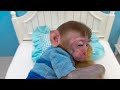 babymonkey #Animal #Animalht Monkey Baby Bon Bon Transports Giant Surprise Eggs And With Puppies In The Swimming .