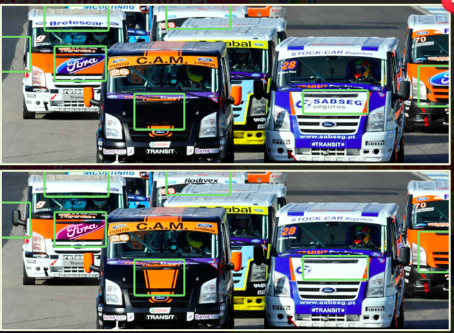 Гоночные грузовики — четыре логотипа на капоте, зеркало заднего вида слева, две надписи над лобовым стеклом.
