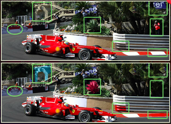 Гоночный болид — арка на заднем плане, реклама на трассе, цвет растения, фотограф.