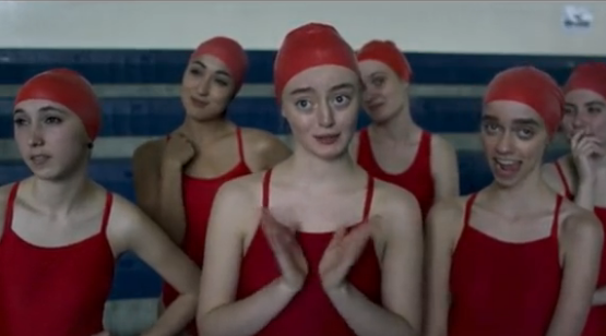 Отрывок из фильма достаточно большой и интересный, хочется узнать, что же будет дальше. Сначала показывают как вот эти девицы, одноклассницы издеваются над девушкой, она боится прыгнуть в бассейне с вышки, но одна из девиц ее сталкивает.