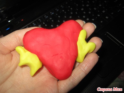 Тут сынок протягивает мне сердечно сделанное из соленого теста! И говорит : «Мама с плаздником, вот падаяк, только тут на двоих!! Я сейчас чик-чик пополам, идна половина тебе, а другая ПАПЕ. »