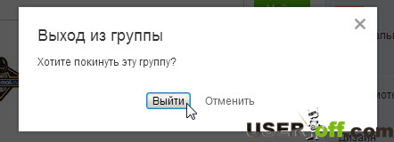 Также можно зайти в саму группу и уже оттуда произвести выход из группы. Нажимаем на главное фото группы. После того, как зайдёте в эту группу — в левом верхнем углу находим список под главным фото сообщества, выбираем последний пункт «Выйти из группы» и нажимаем на него левой кнопкой мышки.