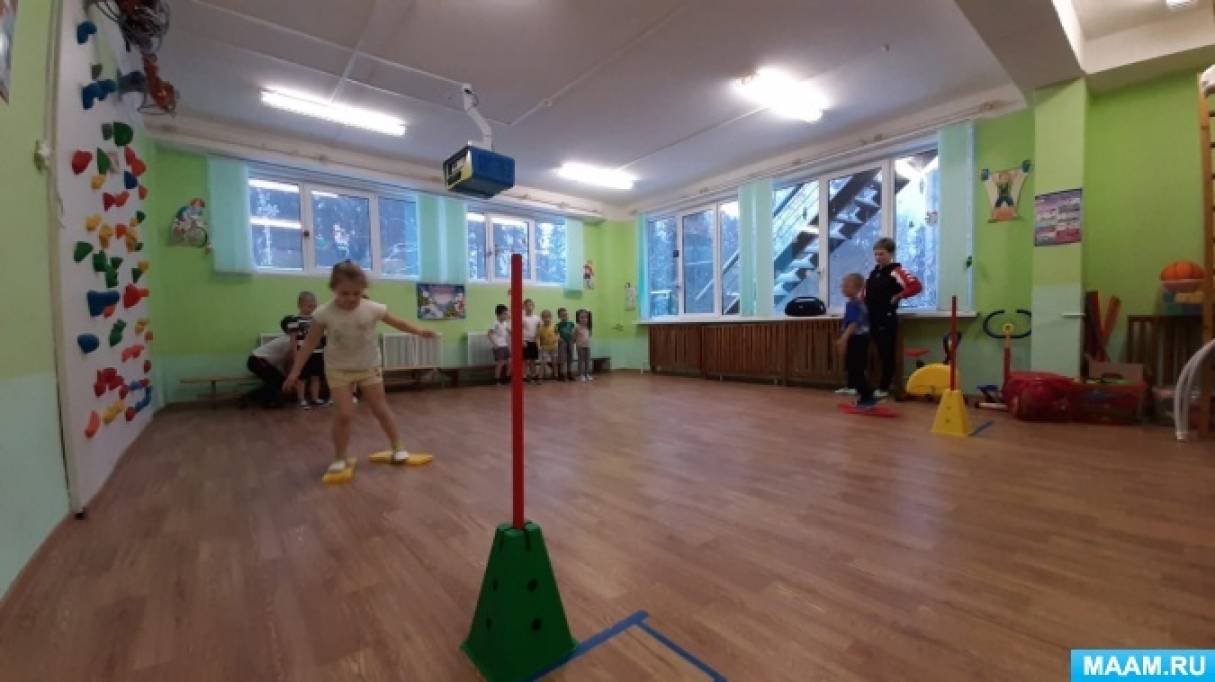 Под звучание песни «Колобок — Румяный бок» проводится эстафета «Ловкие мячи».