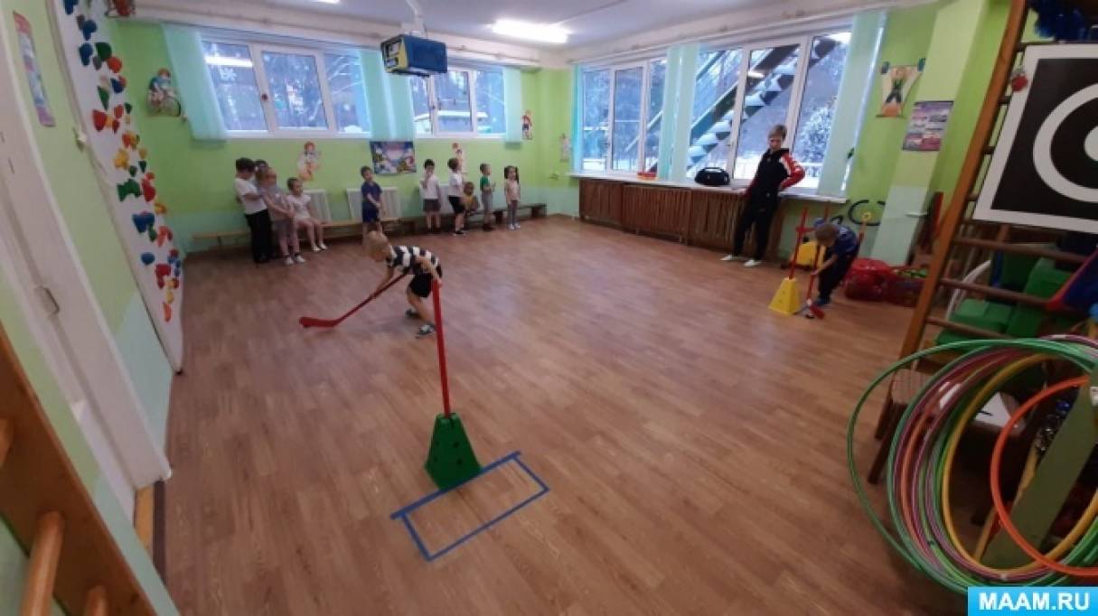 Дети делятся на две команды и строятся колоннами у стартовой линии. Первые участники клюшкой ведут шайбу до стойки, обходят ее, возвращаются с тем же заданием. Передают клюшку и шайбу следующим участникам. Игра заканчивается, когда все члены команды выполнят задание.