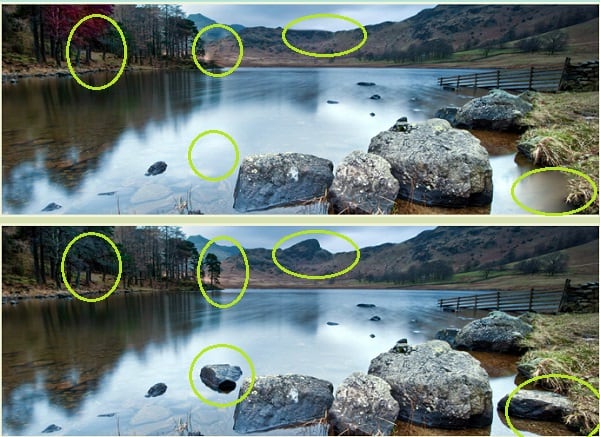 Картинки в «5 отличий» тасуются и выдаются пользователям довольно случайным образом, потому какая именно картинка выпадет вам в следующий раз точно неизвестно. Ниже я подам несколько картинок, выделив кружками разницу в визуальных элементах.
