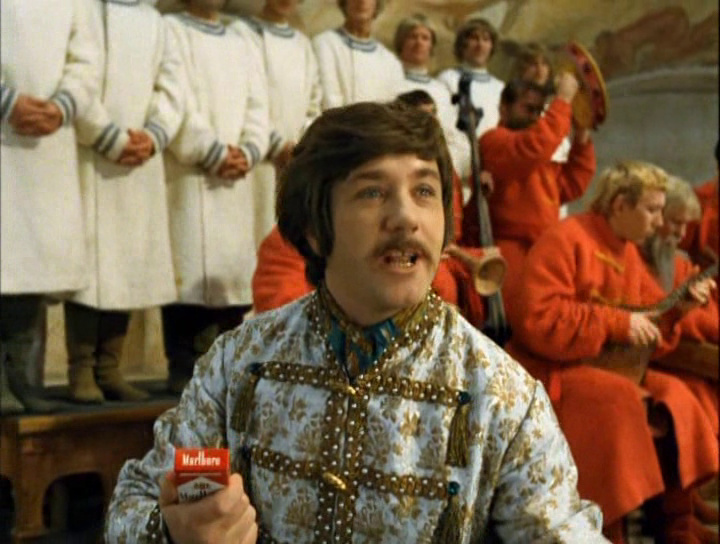 В качестве правильного примера можно упомянуть про фильм «Иван Васильевич меняет профессию», где один из актеров держит в руке пачку Marlboro.
