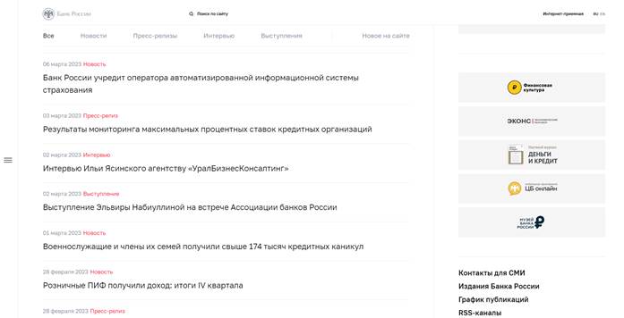 Основное меню сайта находится в левой части экрана. На сайте внедрена удобная система навигации, благодаря которой каждое из направлений деятельности Банка России представлено отдельным разделом, а вся информация организована по единым стандартам.