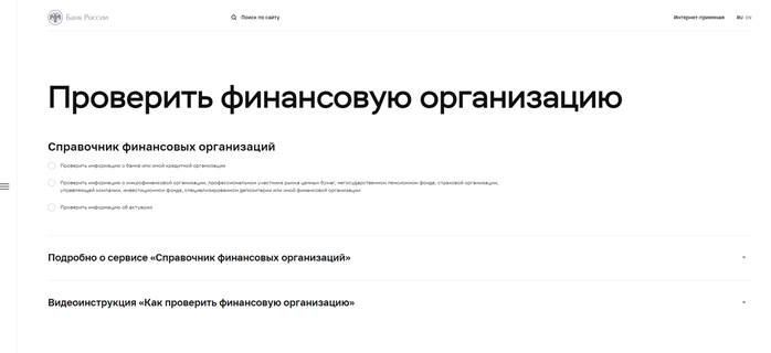 Для того чтобы подробнее узнать о содержимом раздела, в основном меню сайта необходимо нажать «Плюс» или сразу перейти в нужный раздел. На странице которого представлена вся основная информация о секторе финансового рынка и соответствующих функциях Банка России.