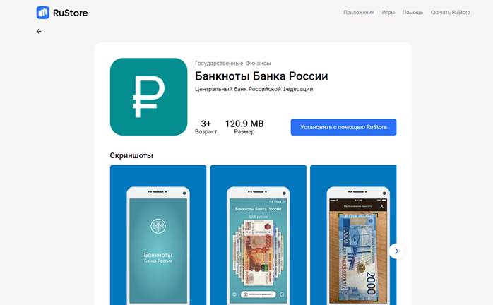 Ещё одним полезным приложением для вашего мобильного телефона, которое можно скачать с сайта Банка России, является мобильное приложение «Банкноты Банка России» – это настоящий гид в мире российских банкнот. Защита российских банкнот постоянно совершенствуется, корректируется дизайн, меняются признаки защиты. С помощью приложения очень легко будет разобраться в том, какую версию банкноты вы держите в руках и как проверить её подлинность.