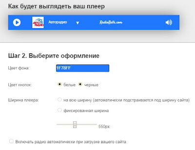 2. Далее есть возможность настроить внешний вид — как будет блок с радио отображаться на сайте.