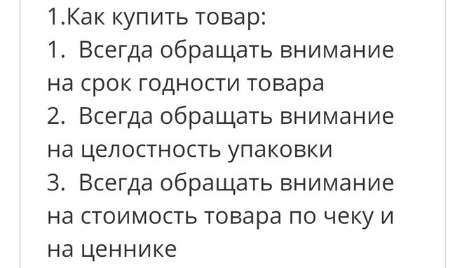В 7 классе по Обществознанию делают такое задание на тему «Памятка покупателей».