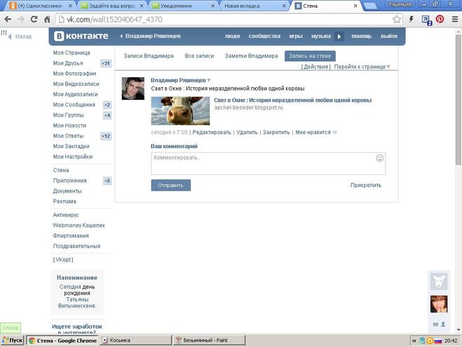 Чего только не научишься делать, чтоб объяснить тебе как найти на Одноклассниках ссылку на ту заметку, которая нужна, и чтоб эта ссылка приводила именно на эту заметку, а не на предупреждение о переходе за пределы Одноклассников. Вот я, например, наконец отработала до автоматизма умение делать скриншот.