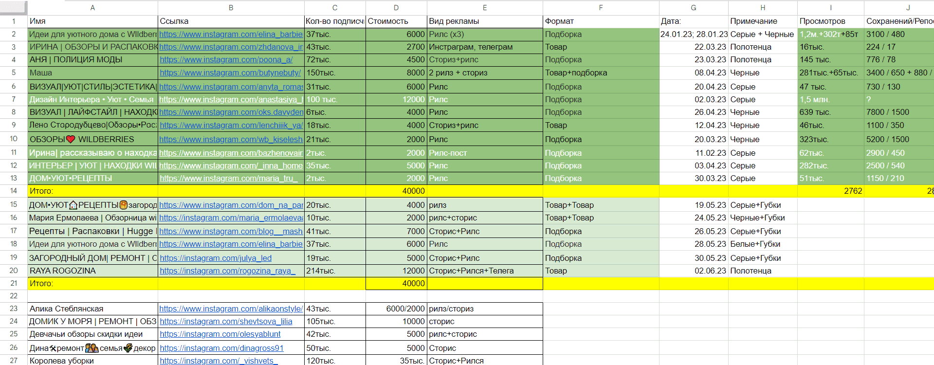 - Примерный “пакет”: ~20 ТГ-каналов + 7 средних блогеров