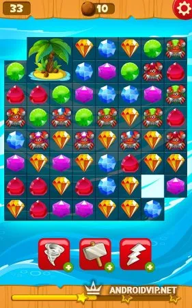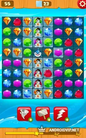 Игровой процесс в Сокровищах пиратов будет максимально простым и понятным абсолютно любому. Основной целью будет сбор трёх или более одинаковых драгоценных камней для их полного удаления с игрового поля. За все действия игрок будет получать очки, чем больше драгоценностей будет удалено за ход, тем больше очков будет получено. Поэтому стоит тщательно продумывать все ходы, чтобы набрать максимально возможный результат к концу уровня.