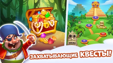 Сокровища Пиратов: Три в ряд — красочная логическая аркада для мобильных телефонов и планшетов под управлением Android и iOS. Из-за отсутствия версии для ПК данную игру не получится так просто установить штатными методами, зато можно скачать Сокровища пиратов на компьютер и выполнить установку через специальный эмулятор. Игра определённо понравится всем любителям увлекательных и одновременно простых головоломок.