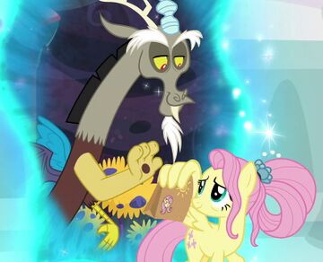 Это не сказано прямо, но, похоже, любимый фанский пейринг Флаттершай и Дискорда стал каноном, ибо пегасочка живёт в одном измерении с Духом Хаоса. На прямой вопрос создателям Джимом Миллером был дан ответ «Свободно для интерпретации».