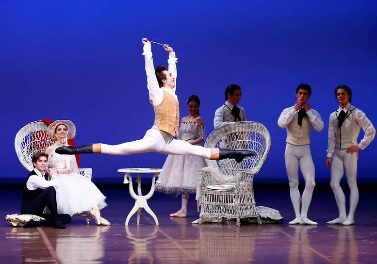 В этой заметной роли — с вариацией, в которой игривая Прюданс залихватски скачет на пуантах,— дебютировала Антонина Чапкина, солистка с огромным подъемом, из-за которого, прыгая на пальцах, она постоянно рискует подвернуть ногу — понятно, что никакой резвости в ее танце быть не может в принципе. Вторая дебютантка — улыбчивая Мария Мишина с неряшливой стопой и аффектированной мимикой — наделила свою светскую куртизанку повадками пионервожатой. Новенькими были и оба отца Дюваля, разрушающие счастье влюбленной пары в обстоятельном дуэте с Маргаритой. Егор Хромушин в этом важнейшем психологическом диалоге был тонок и точен, а вот бывший премьер Руслан Скворцов лишь отбывал актерскую повинность.