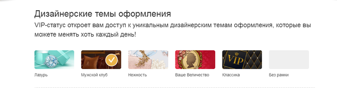 – уникальные рамки для фото и особые VIP-темы оформления профиля, которые вы сможете менять хоть каждый день; - «Живые» темы