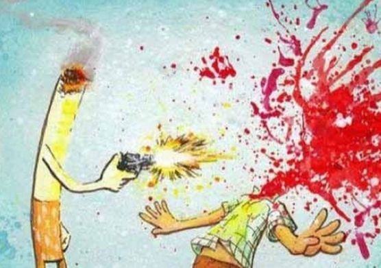 О вреде курения сказано много, так же как и о пользе наглядной агитации на эту тему. Поэтому выбрать вариант плаката не сложно, главное соразмерить свои силы и таланты художника с выбранными образами. То есть можно выбрать очень простой плакат, подчеркивающий что курение уничтожает человеческую жизнь. Вот самый простой и наглядный образец такого плаката, на котором даже писать ничего не надо и так все ясно: