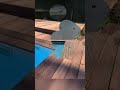 - Далее укладывают доску на пол и ступени. Если это натуральная древесина, то требуется оставлять небольшой зазор между досок. Это защитит их от деформации при сезонном расширении или усыхании материала. При выборе полимерной террасной доски, такие зазоры необязательны. Доски должны крепиться вплотную к бассейну, чтобы не было зазоров.