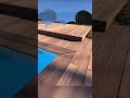 - Далее укладывают доску на пол и ступени. Если это натуральная древесина, то требуется оставлять небольшой зазор между досок. Это защитит их от деформации при сезонном расширении или усыхании материала. При выборе полимерной террасной доски, такие зазоры необязательны. Доски должны крепиться вплотную к бассейну, чтобы не было зазоров.