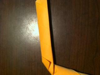 - Сложите верхний угол вниз, чтобы создать рукоять, затем сложите нижний угол вверх, чтобы создать лезвие.