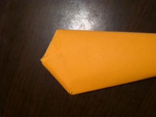 6. Возьмите еще один лист бумаги и сверните его в тонкую трубку. Протолкните трубку в «кармашек» на острие кинжала примерно на 3/4 ее длины